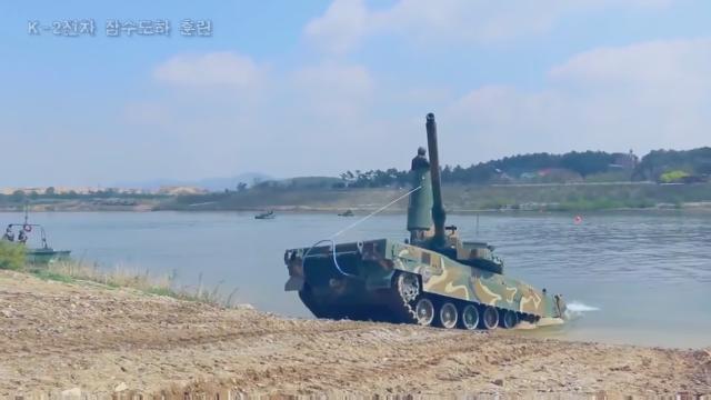The ROK Army demonstrates the amphibious capabilities of the K-2 Black Panther Main Battle Tanks.