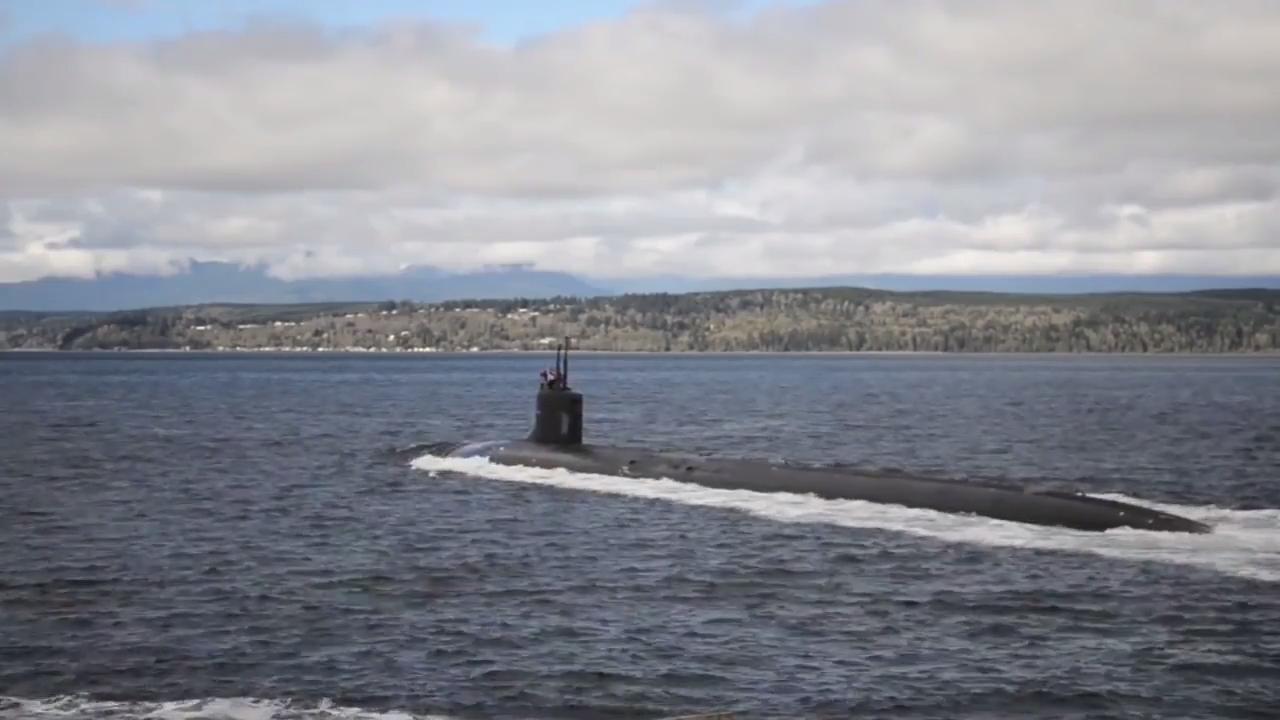The Seawolf-class fast-attack submarine USS Jimmy Carter (SSN 23) transits the Hood Canal as the boat returns home to Naval