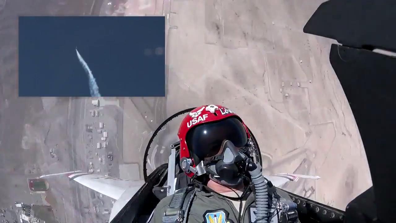 Thunderbird 7, Maj. Kevin Walsh promotes to the rank of Lt. Col. during a practice demonstration over Indian Springs, NV.