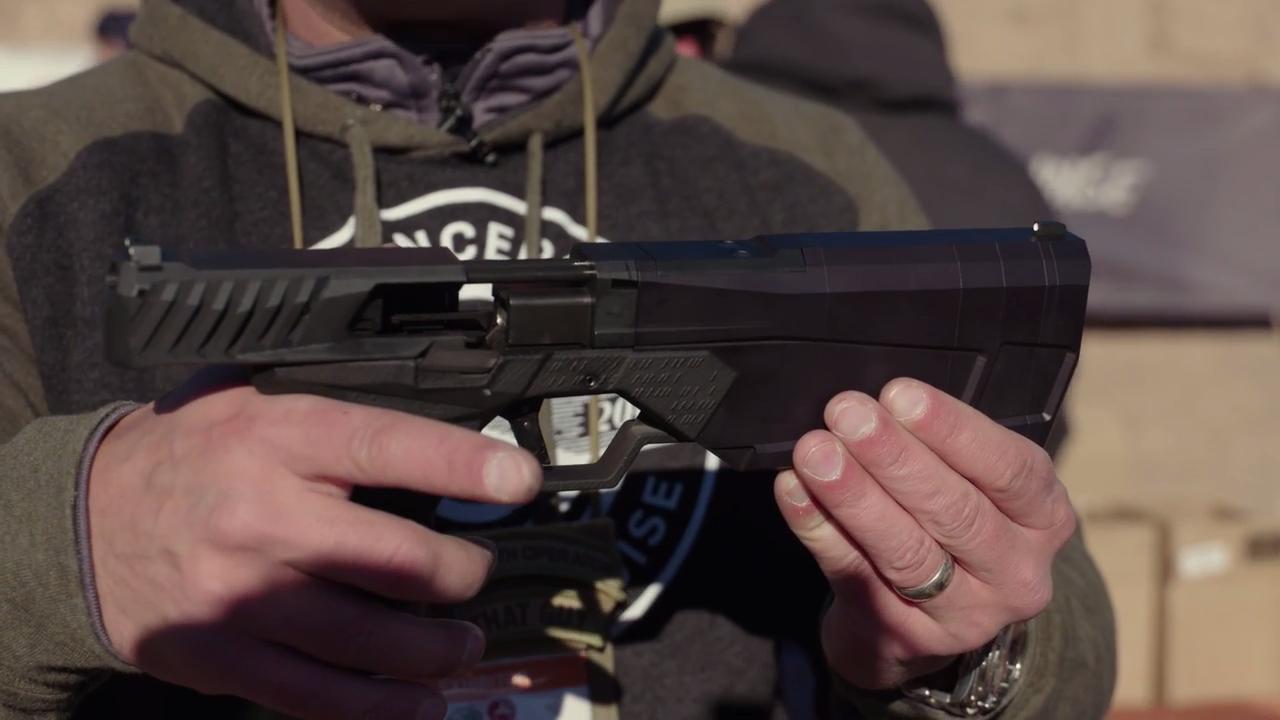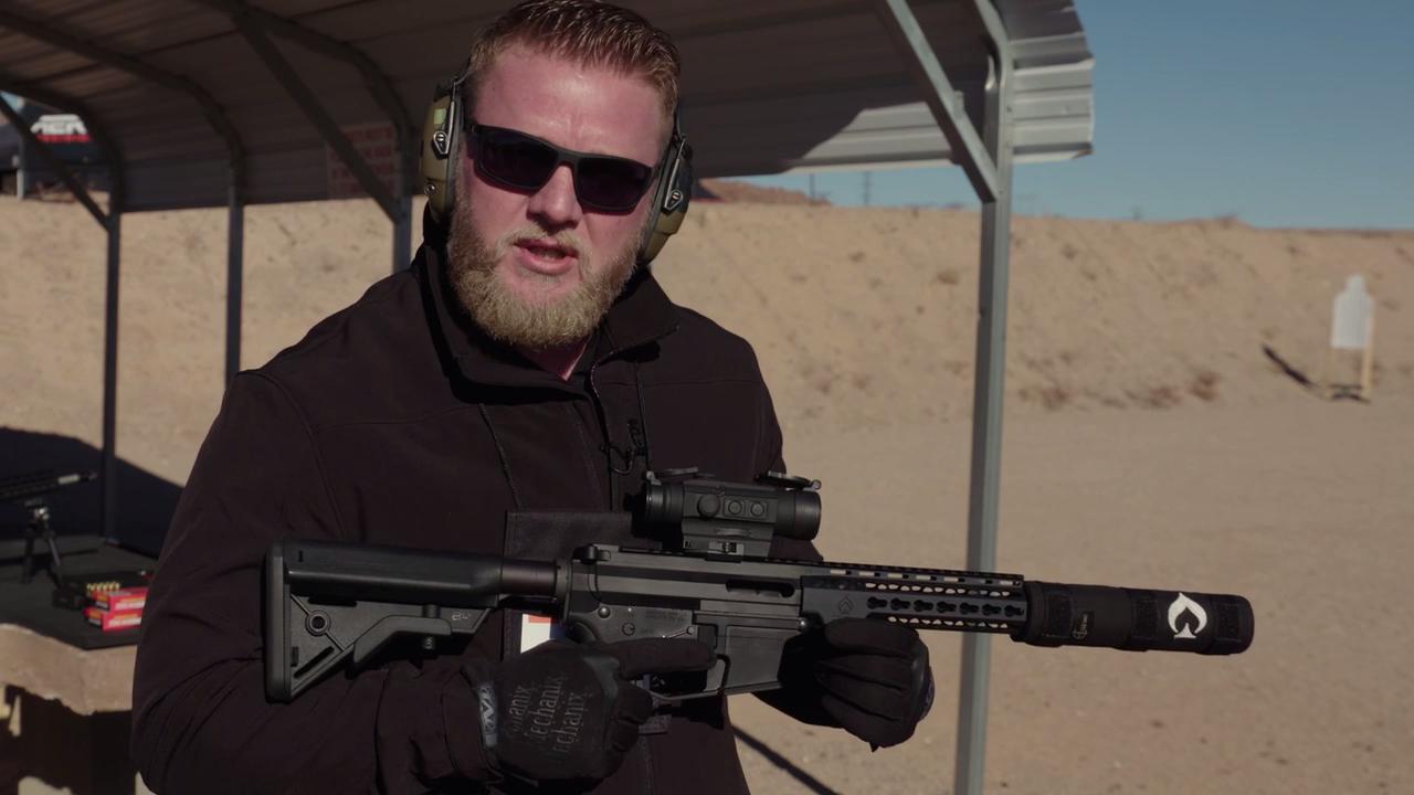 Dewie Vieira from SilencerCo quietly sends rounds down range with their Maxim 9 pistol.