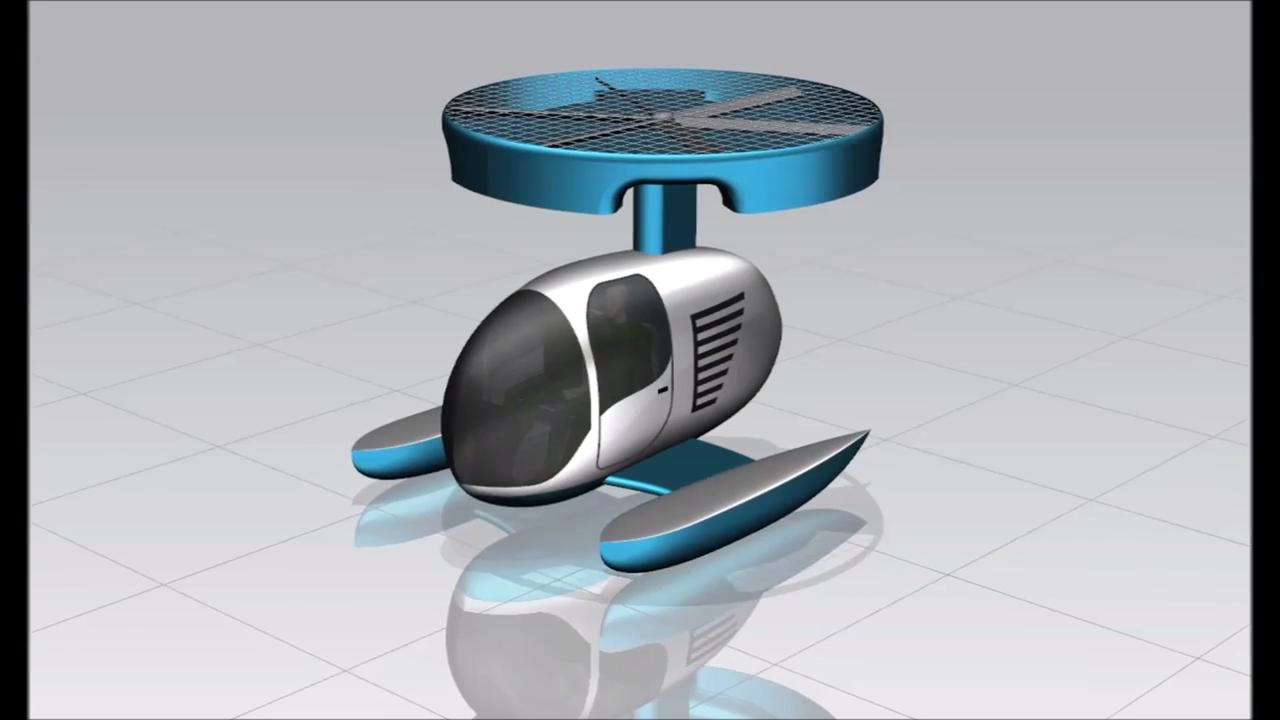 The Lake Hopper is a new helicopter design with no exterior moving parts. Steering is achieved by enclosing main lift