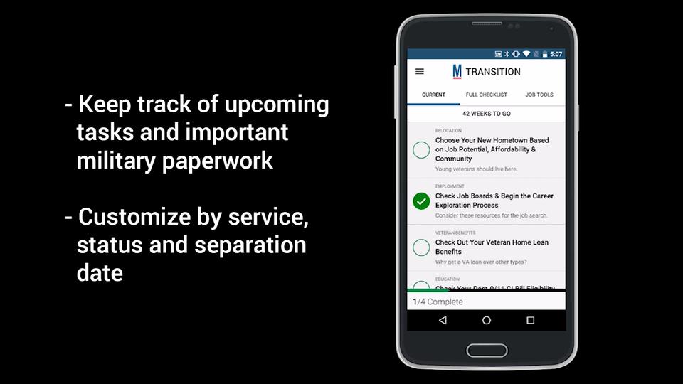 Military.com's Transition App, available for iPhone and Android, lets you customize checklists and tasks to help you in your transition