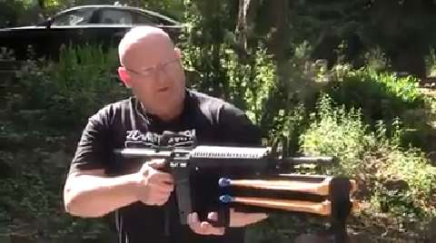 A rifle is converted into a knife shooting slingshot!