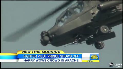 Prince Harry pilots an Apache helicopter and shows the crowd a few manuevers during a recent air show. They didn't