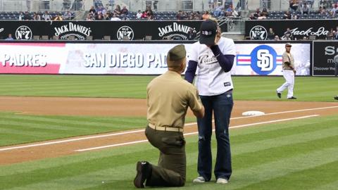 See Sgt. William McGregor propose to his girlfriend after the opening pitch at the San Diego Padres game, June 2