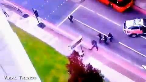 FOOTAGE taken by bystanders shows the attackers who had butchered soldier Lee Rigby try to surprise the cops but instead