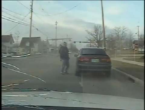 Terrifying dash-cam footage captures the moment a crazed motorist opened fire with an AK-47 rifle at police officers who had