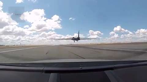 View from reconnaissance aircraft U-2 Dragon Lady's chase cars. Ford Mustang, Chevrolet Camaro. As an instrument of safety, pilots use