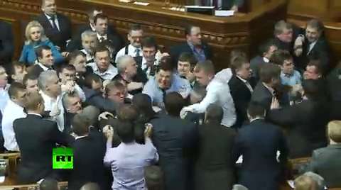Dozens of Ukrainian MPs from the two major parties got into a fist fight in the parliament, the Verkhovna Rada