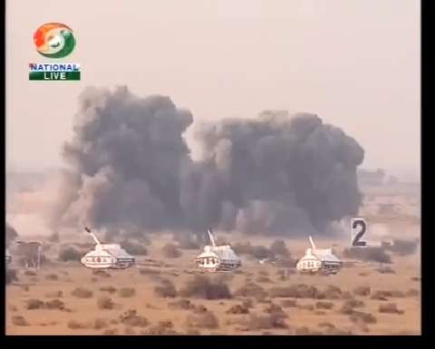 An Indian Air Force MiG 21 conducts a Bison rocket attack during Iron Fist 2013. Strike occurs around the 2