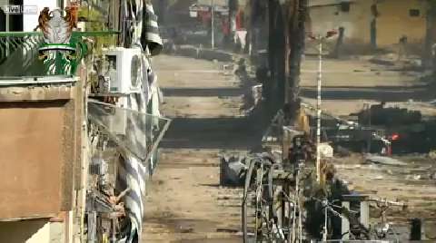 Syria - FSA rebels hit an SAA tank with a recoiless gun. Keep you eye on the right side of