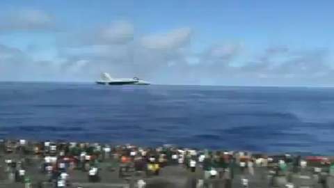 VFA-25 Fist of the Fleet Hornet piloted by Cmdr J.J. "UDA" Mann . Supersonic flyby alongside the USS Ronald Reagan