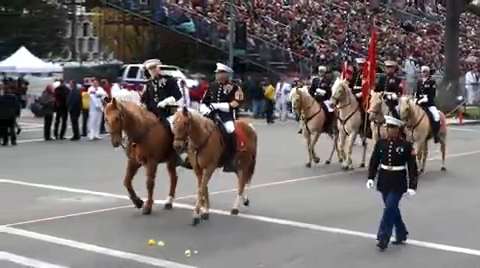 The United States Marine Corps West Coast Composite Band performing at the 124th Annual Pasadena Tournament of Roses Parade on
