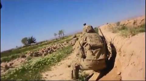 A M249 machine gunner runs directly towards a hail of Taliban PKM machine gun fire and RPGs, laying down suppressing