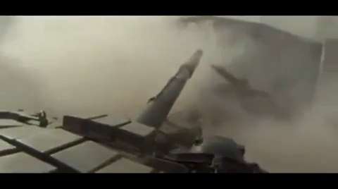 The tail rotor of a Syrian Army helicopter is shot off bringing the aircraft down.