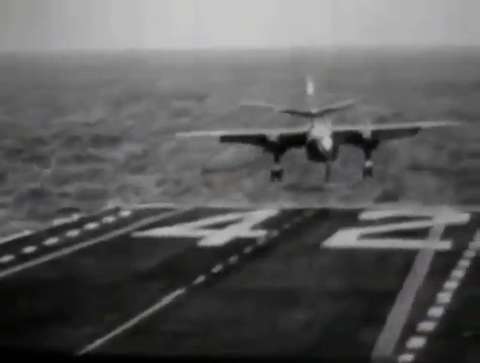 A short video from 1950 of an AJ-1 Savage going over the bow after a deck run.