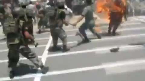 A military parade in Sullana, northern Peru, ended in disaster on Sunday when a soldier's clothes caught fire after he
