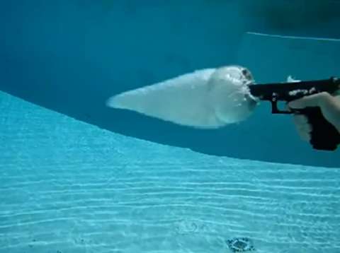 High speed video footage of someone shooting a Glock 22 underwater. Apparently no damage was done to the firearm.