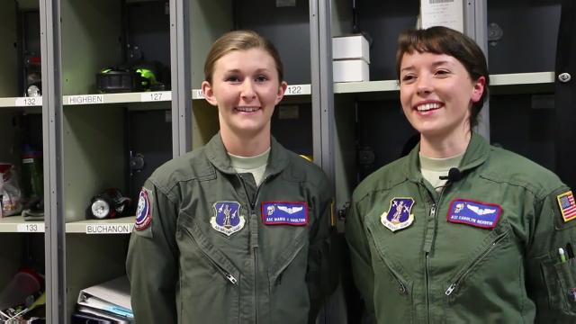 Airman 1st Class Carolyn Rehbein and Airman 1st Class Maria Daulton the 179th's first all female loadmaster crew as part