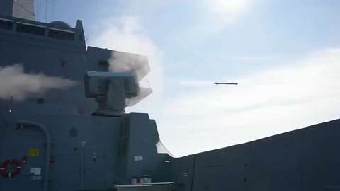 The USS New Orleans (LPD-18) test fires the RIM-116 Rolling Airframe Missile (RAM). The RAM is a small, lightweight, infrared