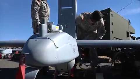 This is the first flight of the RQ-7B Shadow Version 2 unmanned aerial system (UAS), as it takes off from
