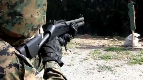 U.S. Marines take to the range with the Benelli M4 shotgun.