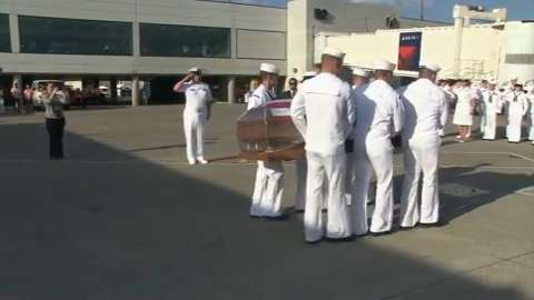 Sailors assigned to Navy Operational Support Center Nashville perform plane side honors for the remains of Logistics Specialist 2nd Class