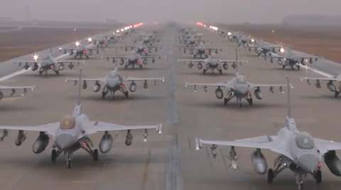 Frickin’ massive elephant walk of F-16's at Kunsan Air Base. (2013)