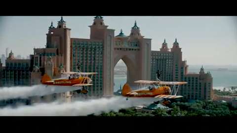The British Breitling Wingwalkers soar above Dubai Iconic locations including the Atlantis hotel, Palm Jumeirah, Burj Al Arab and Burj
