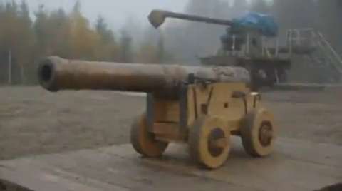 A 24-pounder gun was successfully fired at a newly-built section of the Royal Swedish warship Vasa's hull on Wednesday (October