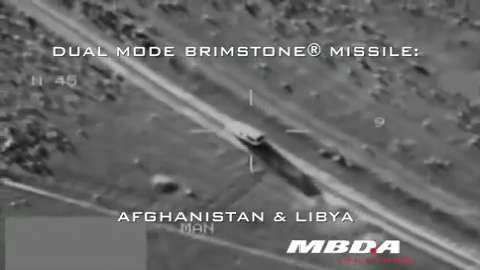 Authentic combat footage of MBDA's Dual Mode Brimstone striking targets in Afghanistan and Libya.