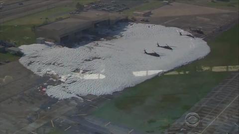 A helicopter base in Tulsa, Oklahoma was engulfed with safety foam on Tuesday, when the base's fire safety system accidentally