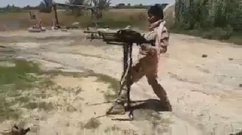 The Iraqi "John Rambo" dual firing what appears to be PK 7.62 mm machine guns.