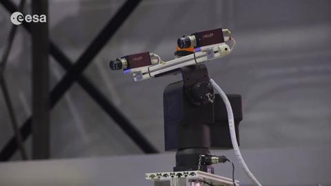 ESA's Eurobot rover roving at Estec on 7 August under live control by astronaut Alexander Gerst on board the ISS