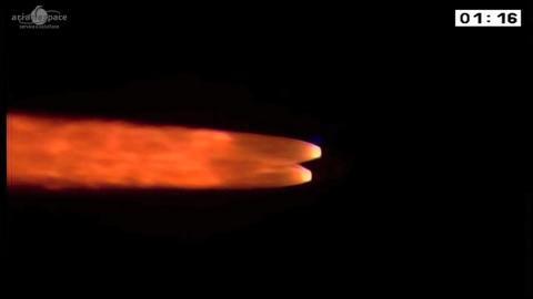 Liftoff of an Ariane 5 launcher from Europe’s spaceport in French Guiana with ESA’s last Automated Transfer vehicle to the