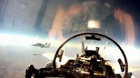 Cockpit view of a U.S. Marines F/A-18 Super Hornet during takeoff, in flight, and landing. The F/A-18 is a two