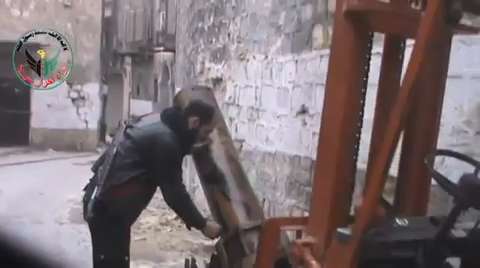 Syrian rebels mash-up a cannon and a Toyota forklift for a mobile mortar system. Skip to the 45 second mark