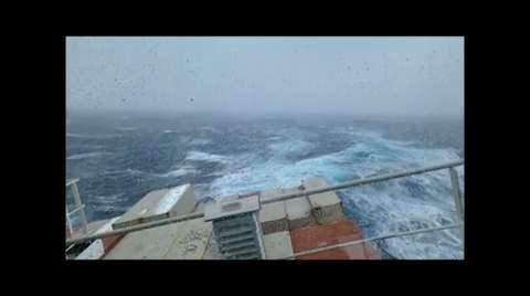 Container ship OOCL Belgium taking 40 degree roll -- The 2,992 TEU container ship, OOCL Belgium was caught in the