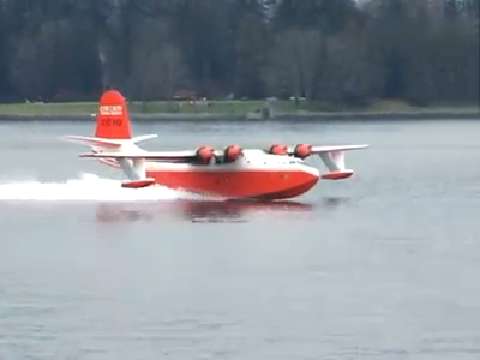 The huge Martin Mars forest fire water bomber in Vancouver BC Canada harbour, 2008-Jan-18. This is how they load the