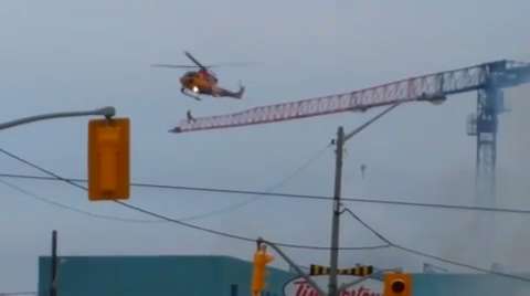 Tuesday's fire at an apartment complex in Kingston, Ontario, quickly engulfed the cab of the crane, forcing the operator to