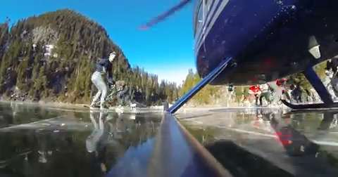 A Canadian Beer commercial in the making? Check out this helo pilot skim across a frozen lake and crash a
