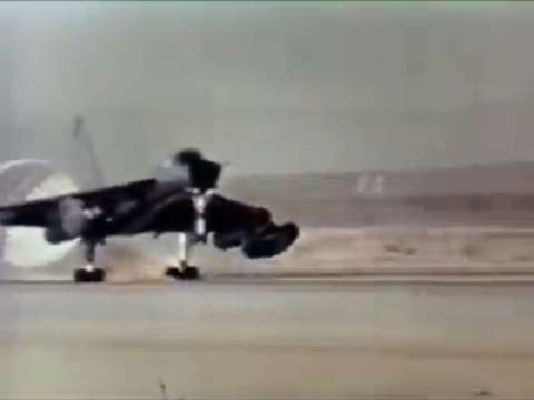 A United States Air Force Convair B-58 "Hustler" encounters serious problems during takeoff when a tire explodes and causes damage