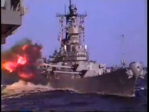 USS Missouri firing her Big Guns. Video from USS Princeton steaming to Japan just before Desert Storm & Desert Shields