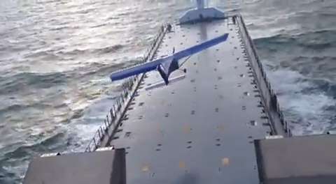 For the first time, a small plane lands on a 60 metre deck of a 3,000 ton cargo ship.