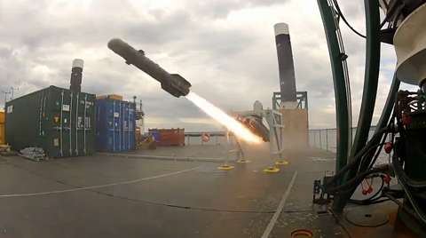 The UK developed, combat-proven, Brimstone missile carries out the world's first surface-to-surface salvo engagement of multiple Fast In-shore Attack Craft