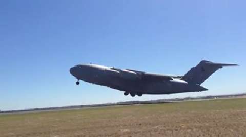 An RAAF C-17 Globemaster conducts a short takeoff (400m!) at the 2013 Avalon Air Show.