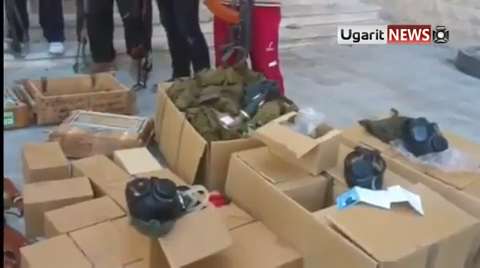 Rebels capture weapons and gas masks + chemical protection suits only days after the Assad Regime threatened to use chemical