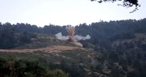 Syrian Army soldiers destroy two FSA captured tanks.
