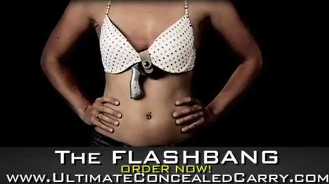 The FLASHBANG Holster! The perfect concealed carry solution. Flashbang attaches to the middle of the bra and tucks under the