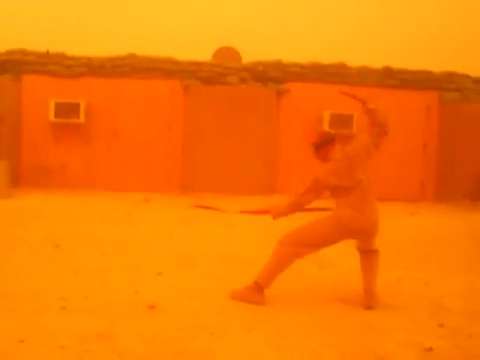 "Bored Marine battles a severe sandstorm in Iraq. The color of the video is true color. Storms like this one